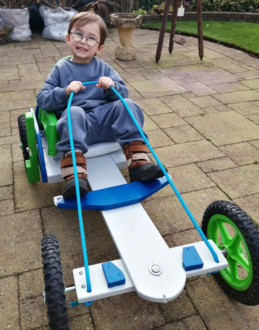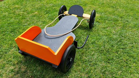 As promised please find attached photos of Kieron & his Go-Kart, and would like to say how much fun we had making the kart and thank you for the easy to follow instructions, as well as the wheels and axles! Kieron & friends have had great fun playing on it so far!